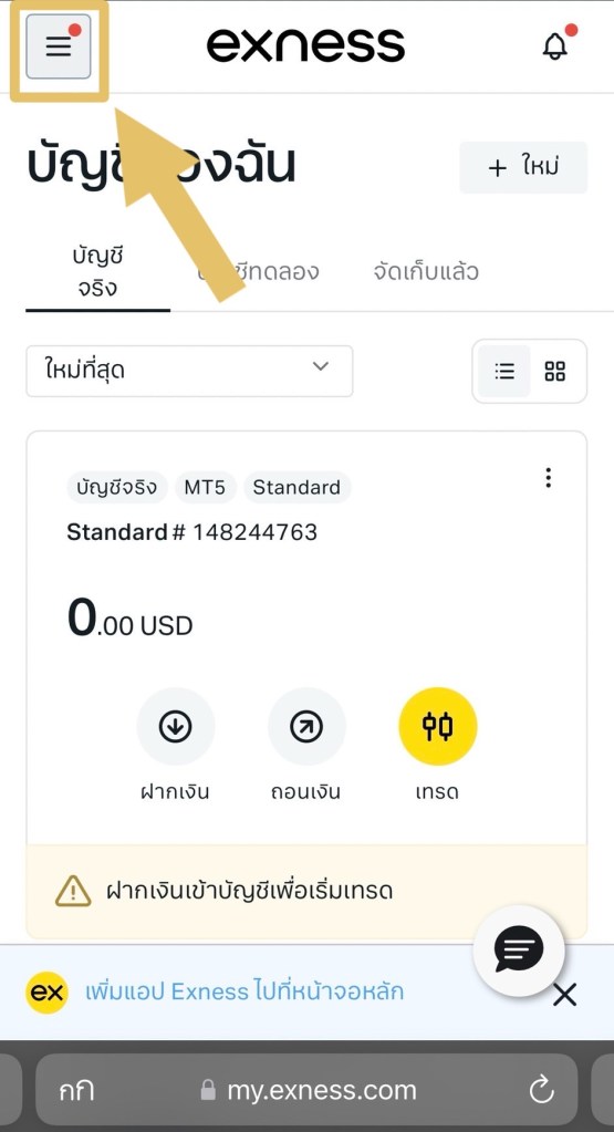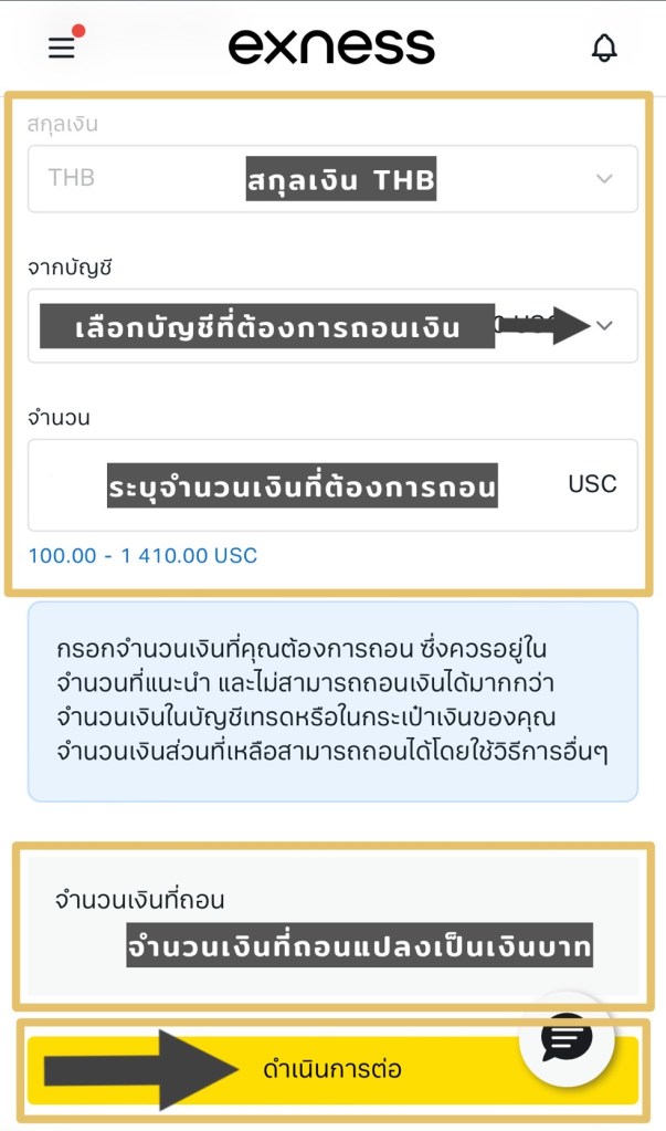 5.เลือกบัญชีเทรดที่ต้องการถอนเงิน