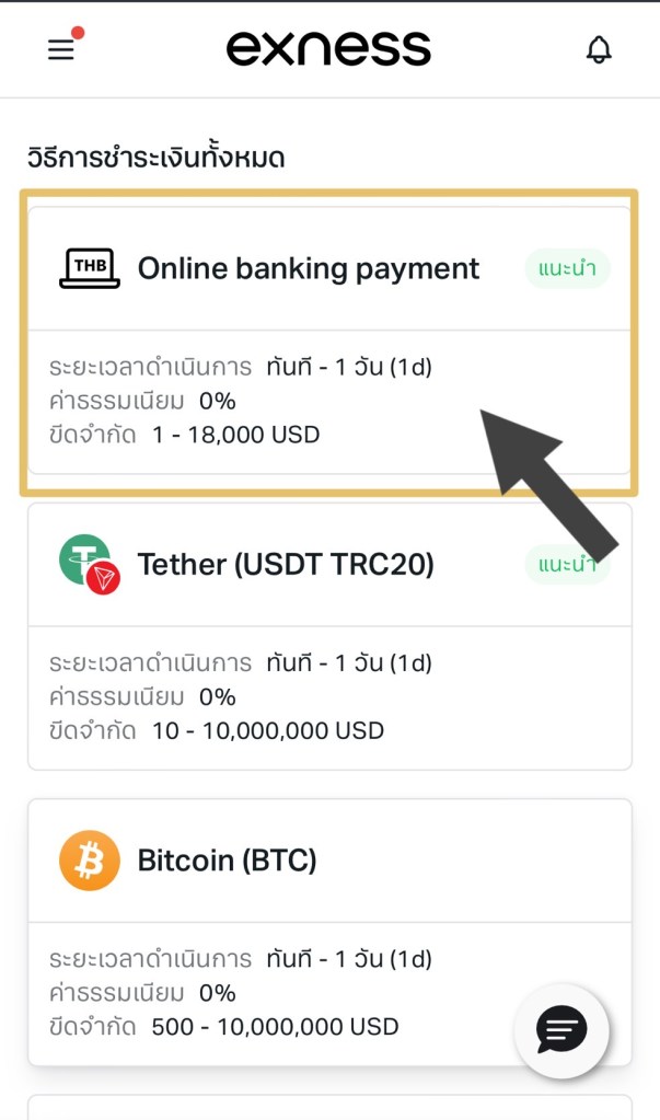 4.จากนั้นเลือกที่ช่องทาง Online banking payment สำหรับการถอนเงินเข้าธนาคารไทย