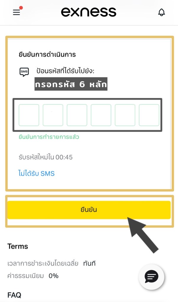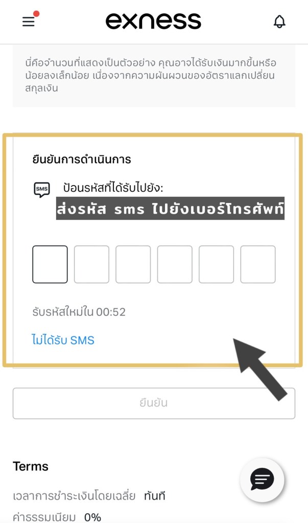 7.จะมีรหัส 6 หลักส่งเป็น sms ไปยังเบอร์โทรศัพท์