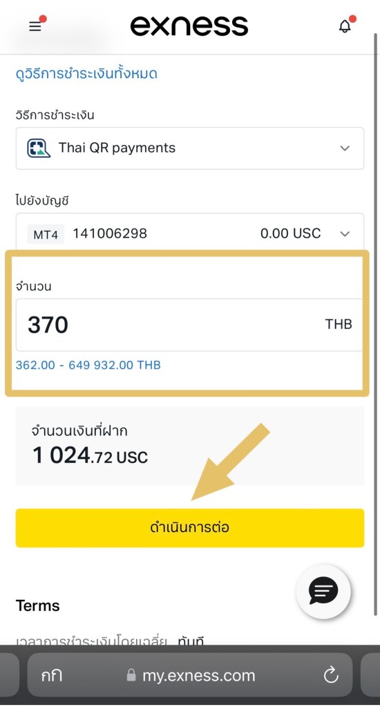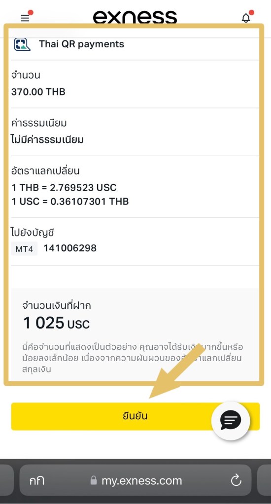 7.เมื่อทำรายการเสร็จแล้ว โดยทั่วไปเงินจะเข้าสู่บัญชีเทรดภายในไม่กี่นาที