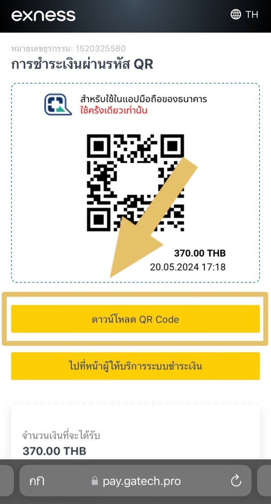 6.ระบบจะแสดง QR Code ขึ้นมาให้สำหรับใช้ทำรายการ