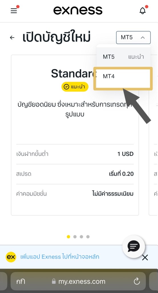 3.เลือกแอปในการเทรด MT4 / MT5