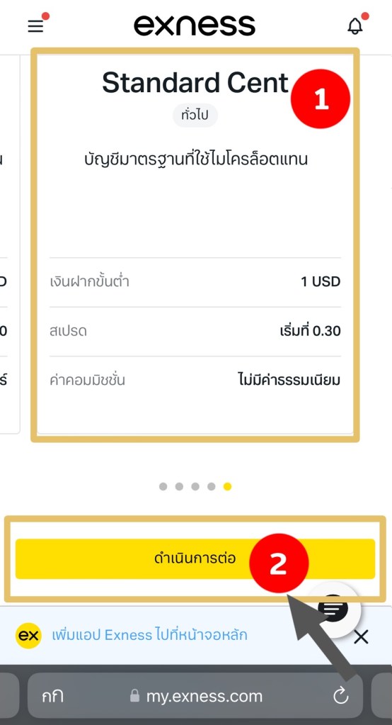 เลือกบัญชีเทรดแล้ว คลิ๊ก “ดำเนินการต่อ”