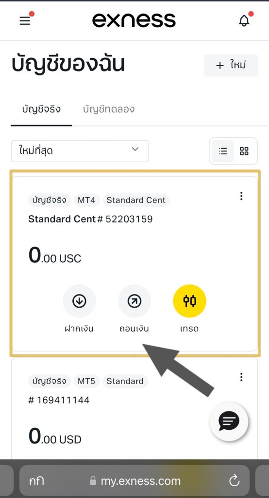 4.เลือกบัญชีในการเทรด