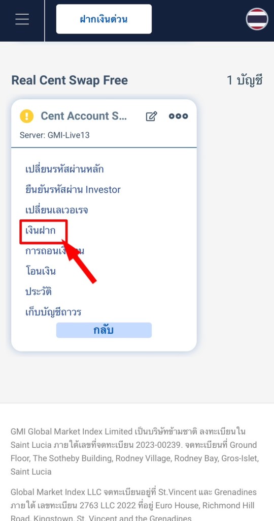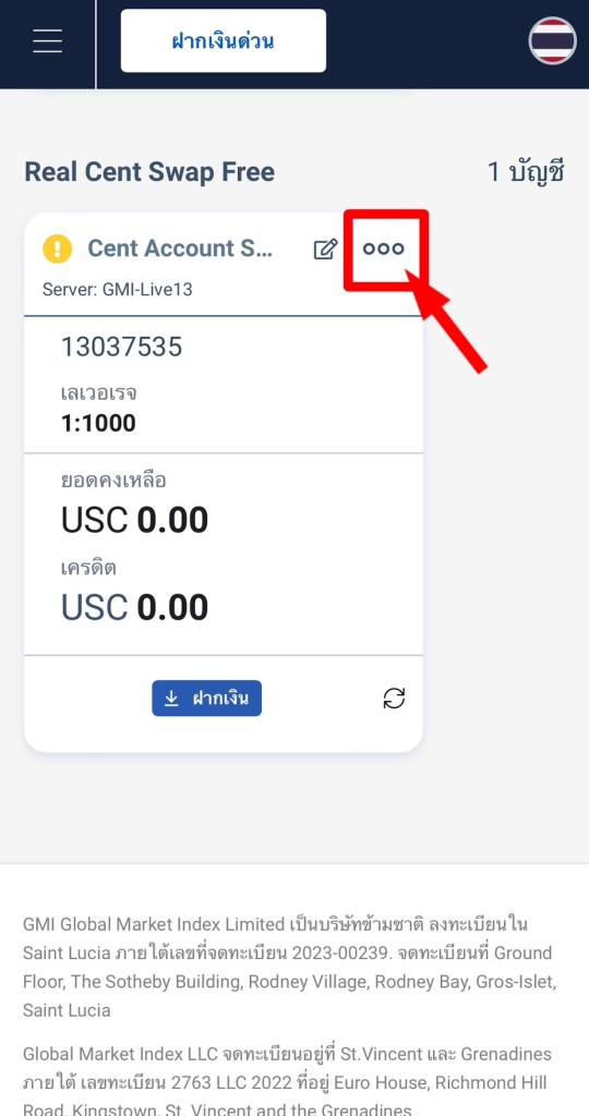 2. คลิ๊กที่จุด 3 จุด ของบัญชีที่จะฝากเงิน