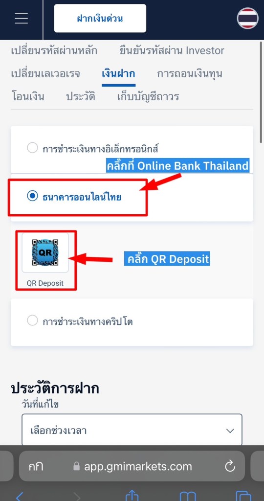4.คลิ๊ก Online Bank Thailand แล้วคลิ๊กที่ QR Deposit