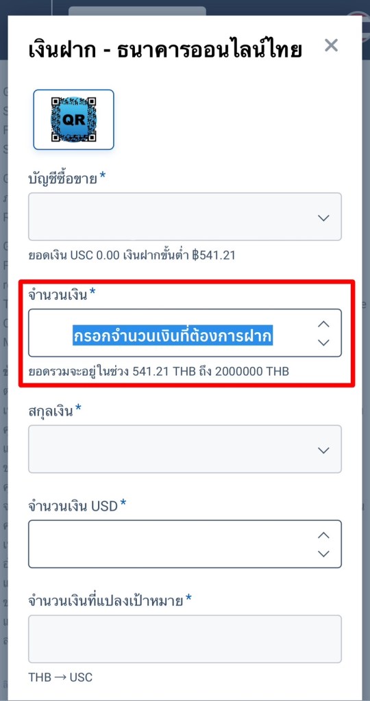 5. กรอก “จำนวนเงิน” ที่ต้องการฝาก