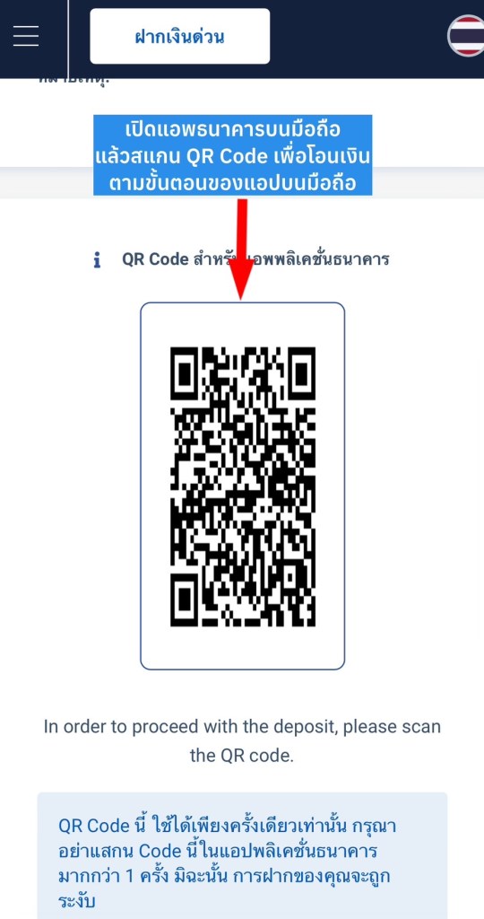 แล้วสแกน QR Code เพื่อโอนเงิน