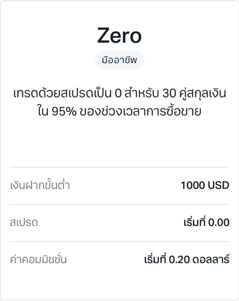 จะแนะนำเป็นบัญชี Zero ที่มีค่า Spread ทองที่ต่ำ