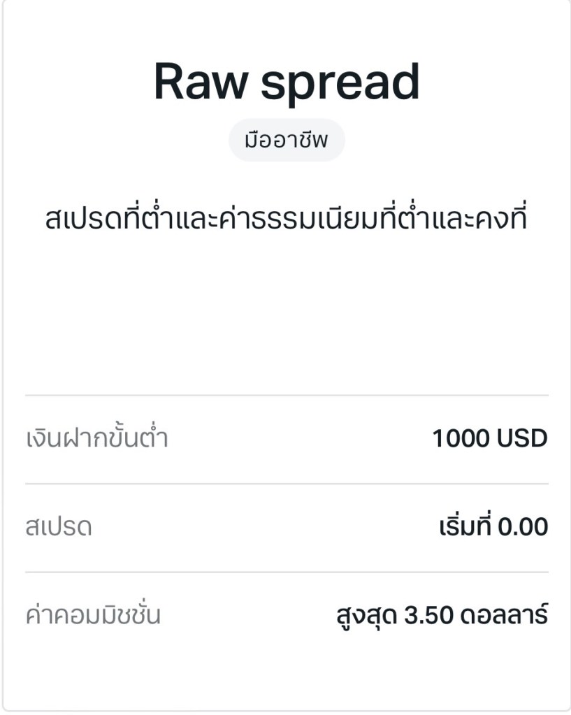 ส่วนบัญชี Raw Spread ก็รองลงมา ซึ่งต่างกันไม่ค่อยมาก